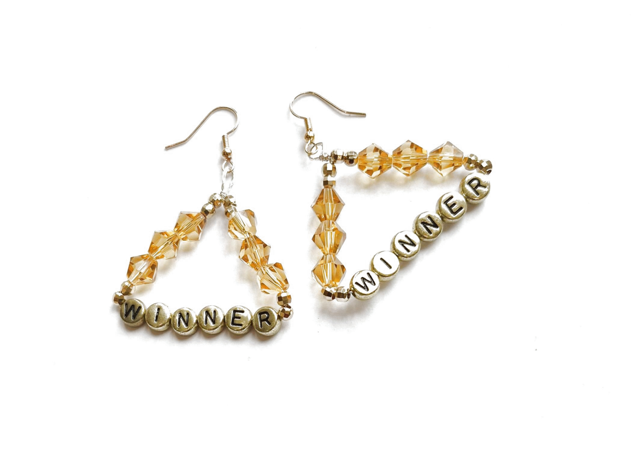 Amber Triangular Earrings with the word WINNER