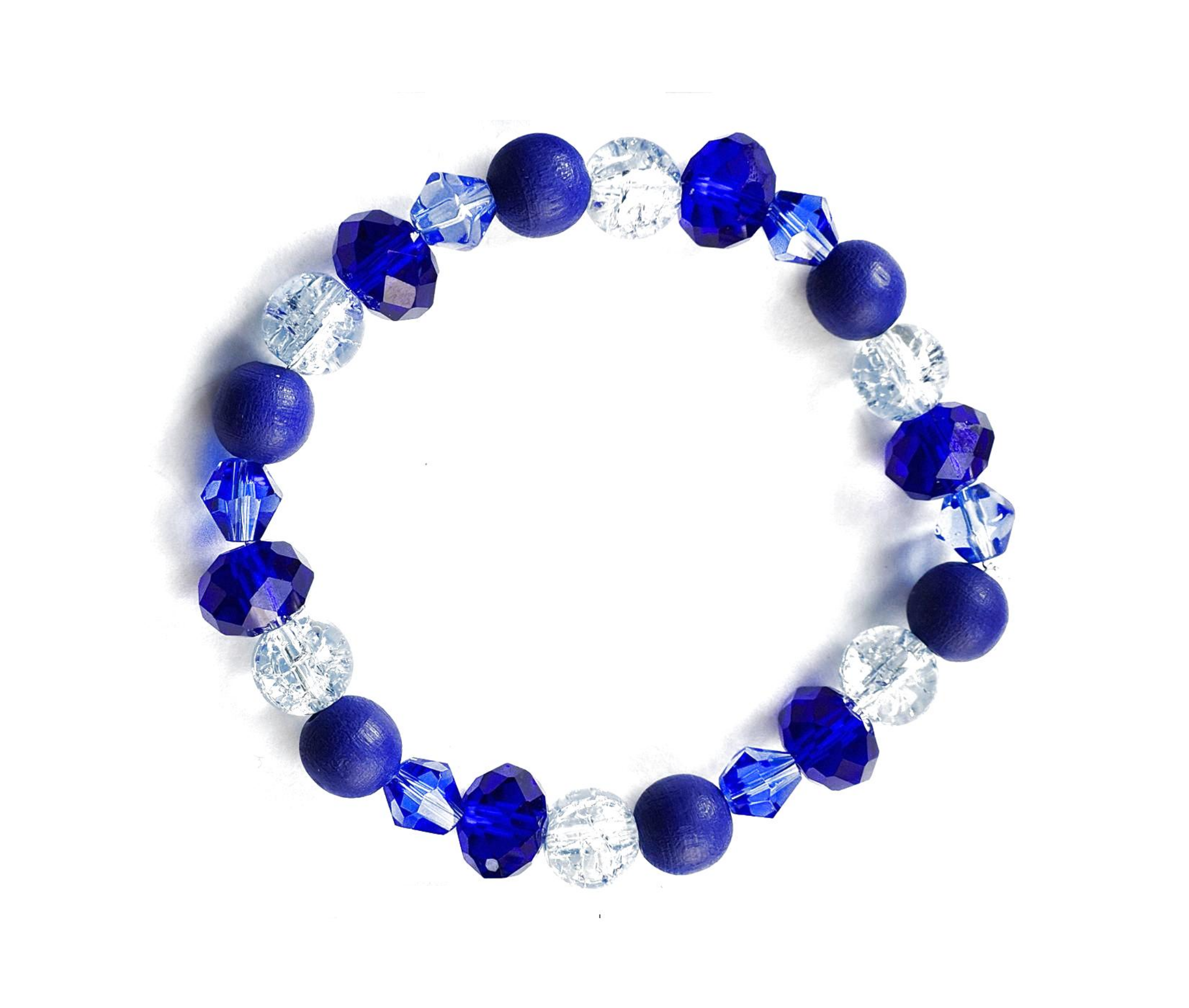 Blue beaded stretch bracelet.
