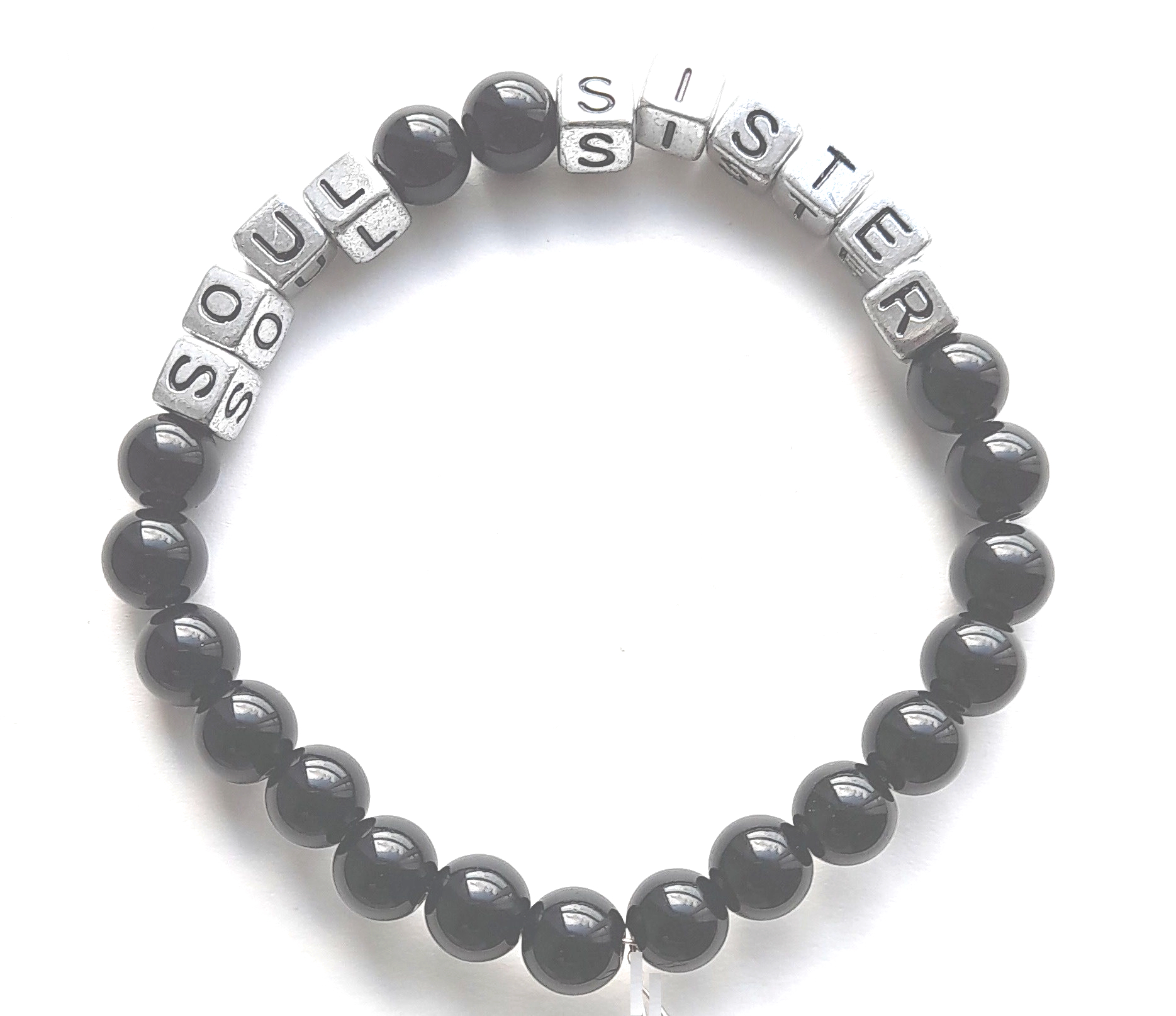 Beaded bracelet with 8mm sized beads. Message – is “SOUL SISTER”